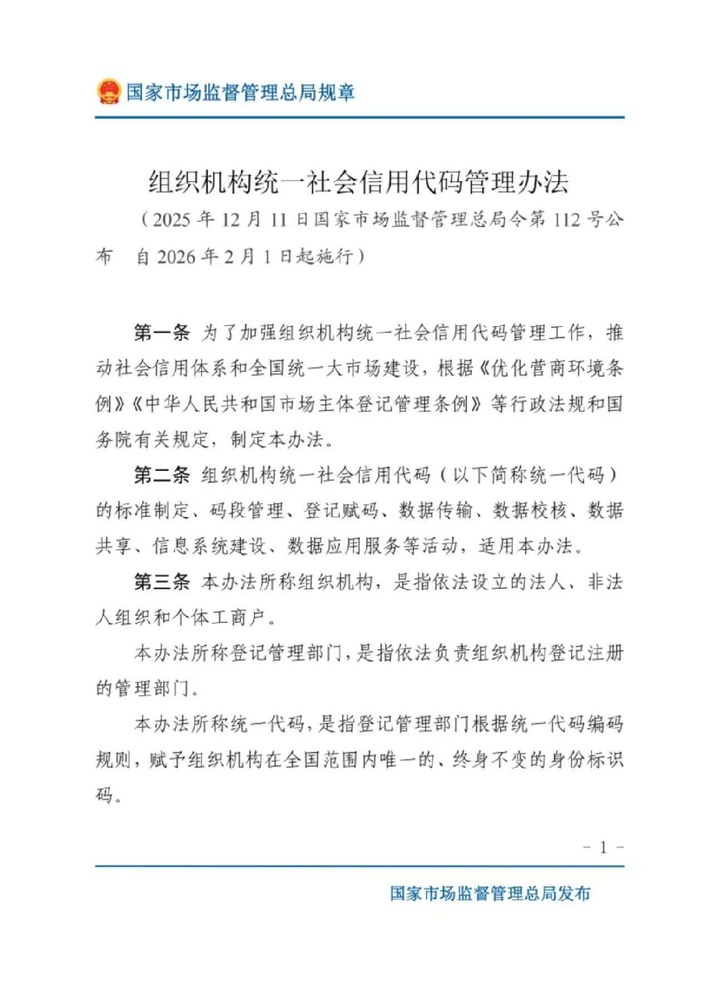 组织机构统一社会信用代码管理办法